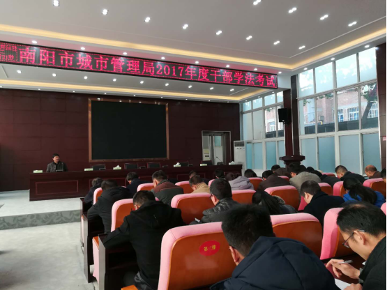 为全面提高城管部门干部职工法律意识,进一步提升城管系统依法行政工作水平,12月26日上午,市城管局组织开展了系统干部学法考试,市局全体干部职工参加了此次考试。此次考试是对今年城管部门干部职工学法的一次检验,重点考查以下内容:《宪法》、《民法总则》、《公务员法》等;《中国共产党党章》、《关于新形势下党内政治生活的若干规定》《中国共产党党章》等;《南阳市白河水系水环境保护条例》;党的十九大报告原文以及省市两级政府关于服务型行政执法建设、行政执法责任制相关文件精神。